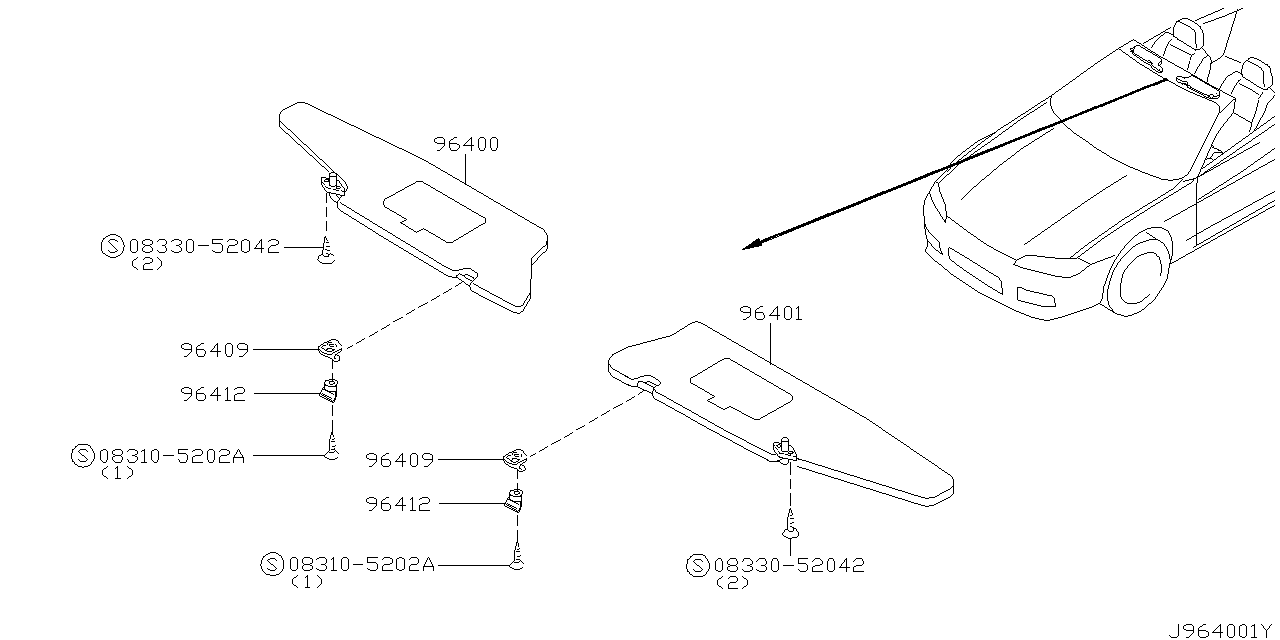 | 96401 | 96401-92F00 | SUN VISOR ASSEMBLY,LH サン バイザー アッセンブリー,LH | 2000/06 - | *K.S | DISCONTINUED | DISCONTINUED | モノタロウ | |