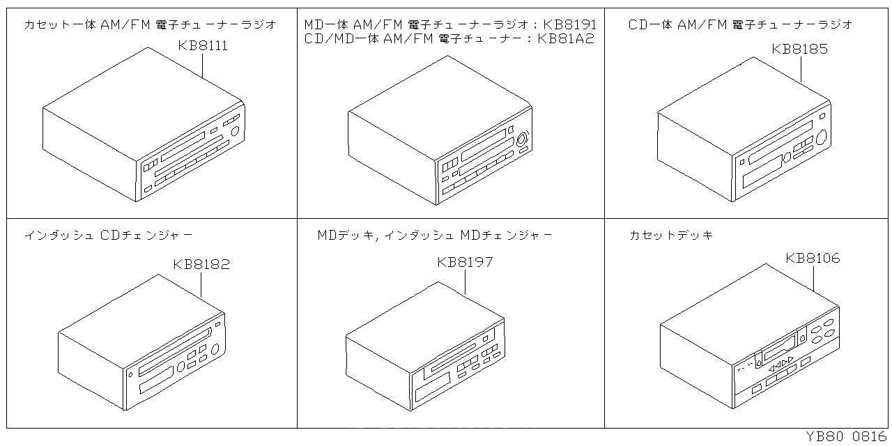 | KB8191 | B8191-VE000 | AM/FM MD STEREO 1DIN AM/FM MD ステレオ 1DIN | 2002/01 - 2002/08 | *K.S.MT.F5 TV/ | JPY 67,488 | USD 642.74 | モノタロウ | |